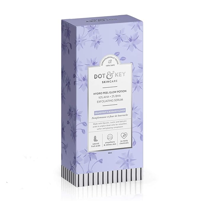 Dot & Key 10% AHA + 2% BHA Hydro Peel Glow Potion, 30ml, Exfoliating Serum with Glycolic, Lactic acids for skin Paraben Free Peeling Solution