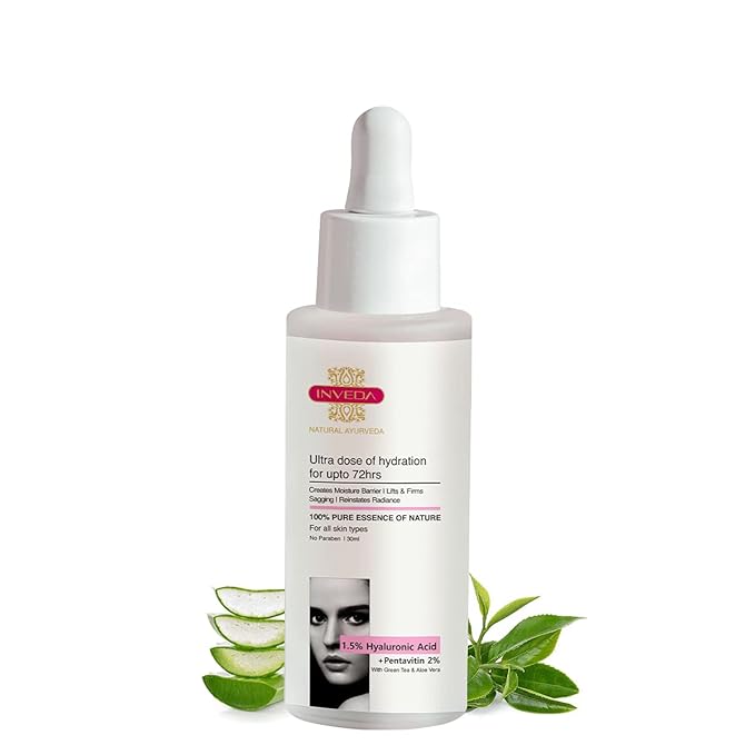 Inveda 1.5% Hyaluronic Acid with 2% Pentavitin - Upto 72 Hours of Intense Moisturization Serum with Green Tea & Aloe Vera for Hydrated and Plumpy Face, 30ml
