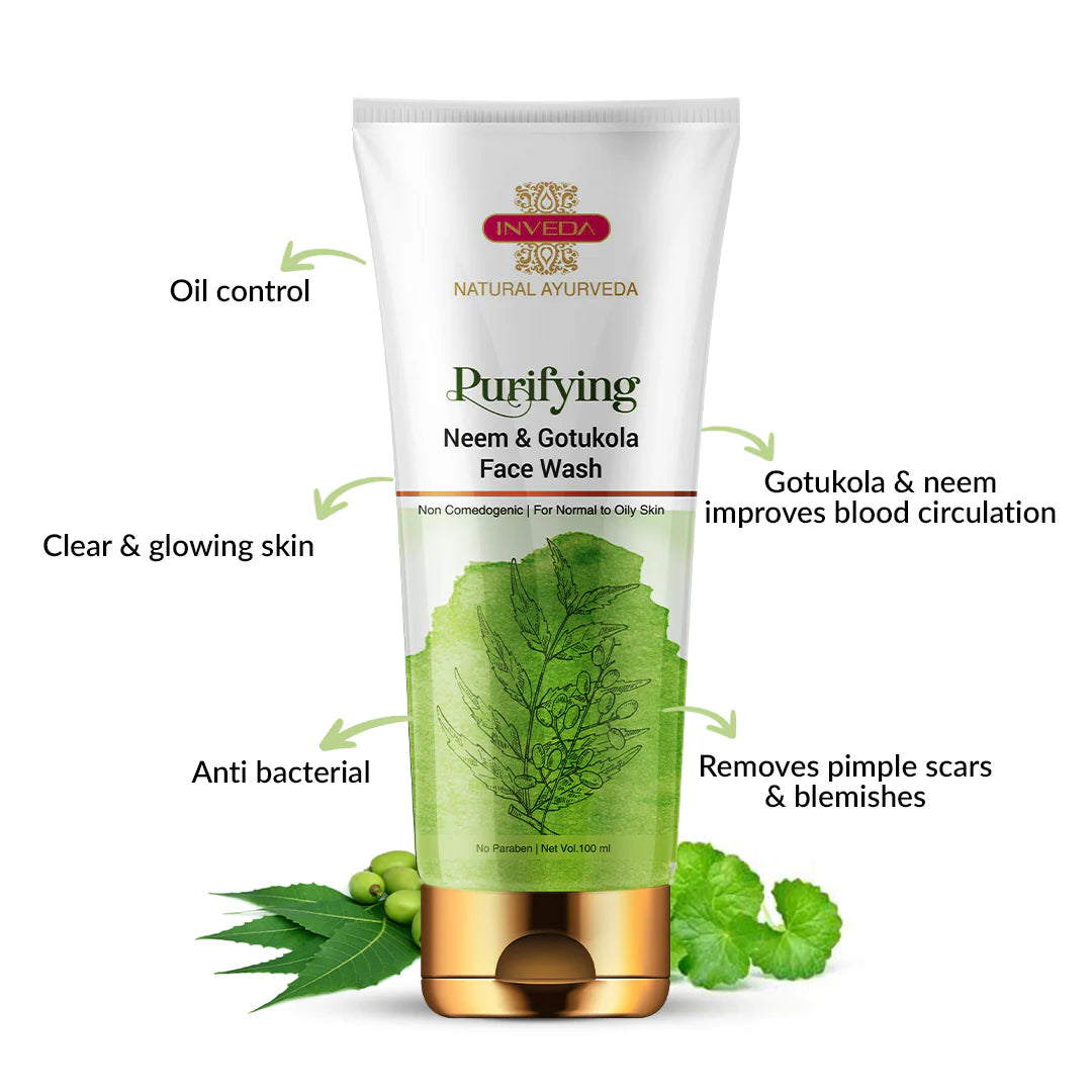 Inveda Purifying Neem & Gotukola Face Wash for Removing Pimples Scar and Blemishes, Giving Clear, Glowing Skin, 100ml