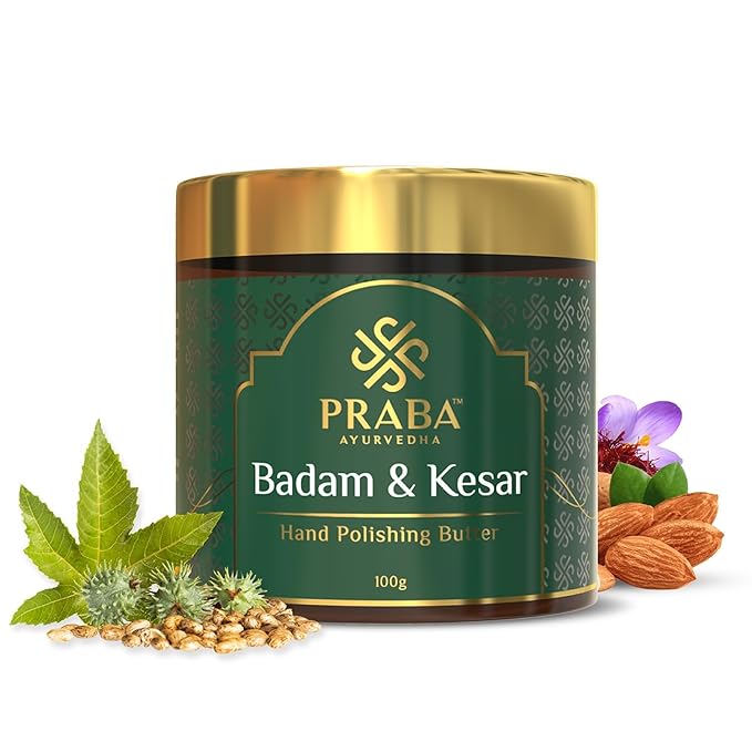 PRABA AYURVEDHA Badam and Kesar Hand Polishing Butter for Dry and Damaged Skin, powerful antioxidant properties,Natural Ingredients -100 g