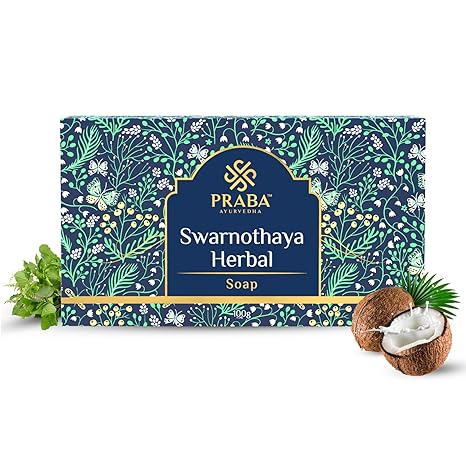 PRABA AYURVEDHA Swarnothaya Herbal Soap, Skin Brightening Soap, Anti-Inflammatory, Made with Virgin Coconut Oil, for all types 100 g
